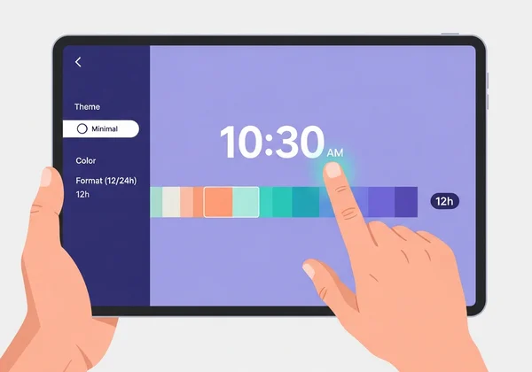 Think of it as a small, private file on your computer that only TimeScreen.org can read when you visit the site. After you click "Save Changes," your unique settings are stored locally. The next time you open our site, it checks this local file and instantly loads your preferred layout. Your data never leaves your device. It’s your clock, your screen, and your settings—and they stay that way. To see how simple this is, you can customize your clock right now.